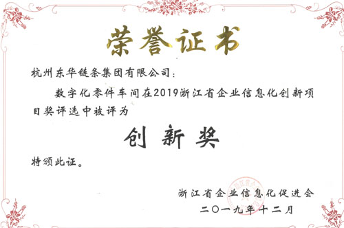 近日,從2019產(chǎn)業(yè)數(shù)字化峰會上傳來好消息,余杭區(qū)被評為“浙江產(chǎn)業(yè)數(shù)字化轉(zhuǎn)型二十強(qiáng)地區(qū)”,東華鏈條憑借“數(shù)字化零件車間項(xiàng)目”榮獲”2019浙江省企業(yè)信息化創(chuàng)新項(xiàng)目獎’。