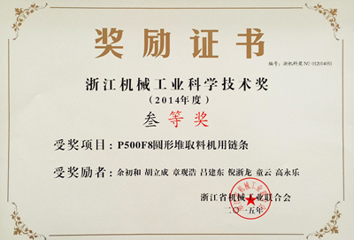 “P500F8圓形堆取料機用鏈條”高端產(chǎn)品獲得浙江機械工業(yè)科技獎,是上級部門對東華集團注重科技創(chuàng)新、產(chǎn)品轉(zhuǎn)型升級的充分肯定和高度褒獎,全面體現(xiàn)了東華集團在中國鏈傳動行業(yè)中的技術標桿、行業(yè)翹楚地位,也將鞭策東華集團繼續(xù)深入開展獲獎科技成果的推廣工作,加速科技成果轉(zhuǎn)化,為促進機械工業(yè)科技進步和中國零部件產(chǎn)業(yè)發(fā)展做出更大貢獻。