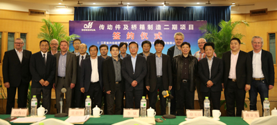 11月14日,東華集團(tuán)與興化市興化經(jīng)濟(jì)開發(fā)區(qū)舉行了傳動(dòng)件及橋箱制造二期項(xiàng)目用地簽約儀式。董事長宣碧華、集團(tuán)高層、海外公司團(tuán)隊(duì)與興化市副市長、興化經(jīng)濟(jì)開發(fā)區(qū)黨工委書記李斌、興化經(jīng)濟(jì)開發(fā)區(qū)管委會(huì)主任劉海山、副主任徐玉山及東華興化齒輪有限公司總經(jīng)理蔣亞龍等共同見證了對東華的發(fā)展具有里程碑意義的時(shí)刻。