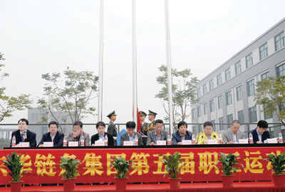 本屆運動會由工會主席魯小林主持。副總經(jīng)理袁立華致開幕辭。袁總說,今年公司創(chuàng)建22周年,在宣董事長的領(lǐng)導(dǎo)下,在各位員工的共同努力下,企業(yè)穩(wěn)健發(fā)展,取得卓越成效。這些成績的取得來源于東華人忠實地踐行董事長提出的“誠信、務(wù)實、創(chuàng)新、求更好”的企業(yè)精神,來源于你們發(fā)揮永不言敗的拼搏精神,來源于你們勇于開拓創(chuàng)新的改革精神,這些都是企業(yè)跨越發(fā)展的“軟實力”。今天,相信你們會在公平公正的競技中,充分凝聚和展現(xiàn)東華人的精神,超越自我,做到“工作中誠信、務(wù)實、創(chuàng)新、求更好 ; 賽場上團結(jié)、激情、拼搏、爭上游”,共同努力譜寫出東華“爭創(chuàng)世界鏈傳動行業(yè)第一”的華彩樂章。
