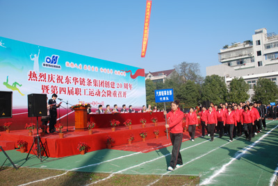 11月27日,運河鎮(zhèn)亭址小學(xué)內(nèi)彩旗飄揚,鑼鼓喧天,雖然已是初冬,但20度的高溫和暖和的陽光,仿佛讓人回到了春天,給在此慶祝東華集團創(chuàng)建20周年暨第四屆職工運動會的東華人增添了無窮的力量和喜慶的氣氛。董事長宣碧華、董事長助理張世強、副總經(jīng)理袁立華等高層及部分員工、600余名運動員在此歡慶東華20華誕。