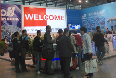 本屆展會上,東華與2009年收購的德國百年企業(yè)KOBO鏈條公司同臺展出,展臺占地120多平方米,設計美觀、大氣,樣品、資料豐富齊全,整個展臺突出體現(xiàn)了“DONGHUA”、“KOBO”的品牌。展臺上半數(shù)樣品專程從德國KOBO公司運送到上海亮相,其精良的德國制造產(chǎn)品和東華的自主品牌產(chǎn)品吸引了無數(shù)國內外客戶的眼光。東華由外貿開發(fā)處處長胡春暉帶隊的業(yè)務員每天忙著接待國內外新老客戶,向客人們介紹東華鏈條產(chǎn)品質量及發(fā)展態(tài)勢等信息,聽取客戶的意見和建議。
