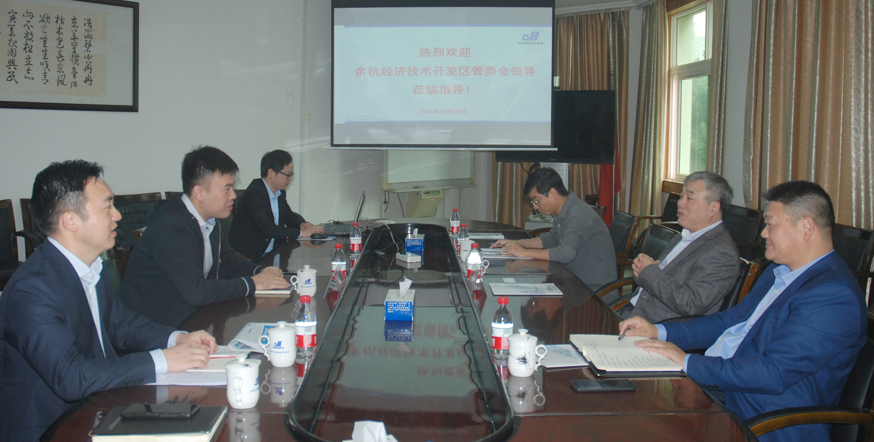 日前,余杭經(jīng)濟技術(shù)開發(fā)區(qū)管委會副主任陳葉根、產(chǎn)業(yè)發(fā)展局副局長黃亮一行到公司調(diào)研。副董事長宣成、管理部副總經(jīng)理劉冬根等領(lǐng)導陪同調(diào)研。