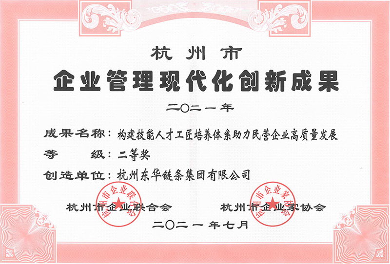 集團(tuán)《構(gòu)建技能人才工匠培養(yǎng)體系助力民營(yíng)企業(yè)高質(zhì)量發(fā)展》獲評(píng)2021年杭州市企業(yè)管理現(xiàn)代化創(chuàng)新成果二等獎(jiǎng)。