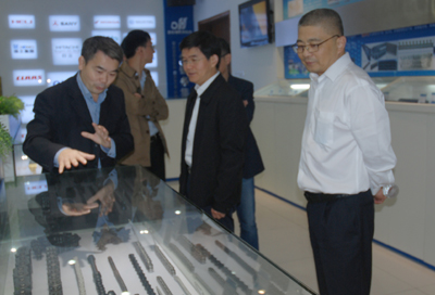 袁副總陪同劉副市長(zhǎng)一行參觀了集團(tuán)公司新區(qū)樣品展廳,向劉副市長(zhǎng)一行介紹了世界鏈條發(fā)展史、中國(guó)鏈條發(fā)展史和東華鏈條集團(tuán)發(fā)展史及公司所獲得的各類重要榮譽(yù),重點(diǎn)介紹了展廳中傳動(dòng)鏈、輸送鏈、板式鏈、工程鏈、扶梯鏈等各種精品鏈條的研發(fā)、制造和配套客戶。劉副市長(zhǎng)一行紛紛提問或點(diǎn)頭稱贊表示認(rèn)可。