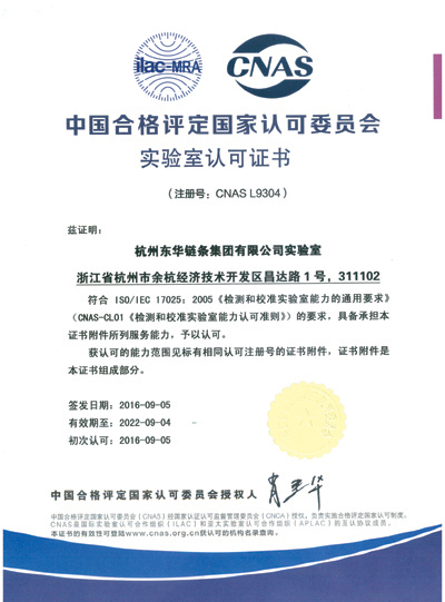 CNAS認(rèn)可資格的取得,標(biāo)志著東華鏈條集團(tuán)實(shí)驗(yàn)室的檢測能力達(dá)到了國家級(jí)水平,也是集團(tuán)公司不斷滿足客戶要求,實(shí)現(xiàn)公司爭創(chuàng)世界第一的鏈傳動(dòng)企業(yè)的目標(biāo)具有里程碑意義的重大成果。