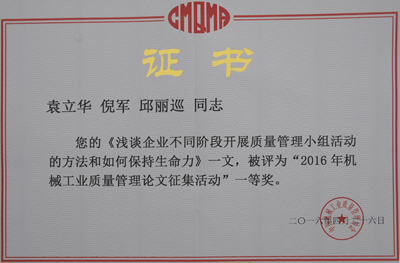 本次會議由中國機(jī)械工業(yè)質(zhì)量管理協(xié)會組織,全國上百家企業(yè)的200多人參加會議。會上邀請國家工信部領(lǐng)導(dǎo)與行業(yè)專家解析了《國家“十三五”規(guī)劃》內(nèi)容和路線圖,介紹了《制造業(yè)質(zhì)量和品牌提升三年行動計(jì)劃(2016-2018年)》。各行業(yè)質(zhì)量負(fù)責(zé)人交流了行業(yè)質(zhì)量管理經(jīng)驗(yàn)和企業(yè)落實(shí)機(jī)械工業(yè)“十三五”質(zhì)量規(guī)劃行動舉措、方法,同時(shí)對全國機(jī)械工業(yè)質(zhì)量管理優(yōu)勝論文進(jìn)行了評選和表彰。東華集團(tuán)的《淺談企業(yè)不同階段開展質(zhì)量管理小組活動的方法和如何保持生命力》及《以質(zhì)量為核心,化“?!睘椤皺C(jī)”,創(chuàng)建國際知名品牌》兩篇論文分別獲得一等獎(jiǎng)和優(yōu)秀獎(jiǎng)。