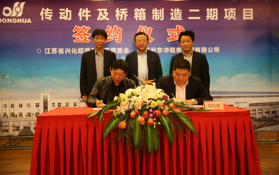 11月14日,東華集團(tuán)與興化市興化經(jīng)濟(jì)開發(fā)區(qū)舉行了傳動(dòng)件及橋箱制造二期項(xiàng)目用地簽約儀式。董事長宣碧華、集團(tuán)高層、海外公司團(tuán)隊(duì)與興化市副市長、興化經(jīng)濟(jì)開發(fā)區(qū)黨工委書記李斌、興化經(jīng)濟(jì)開發(fā)區(qū)管委會(huì)主任劉海山、副主任徐玉山及東華興化齒輪有限公司總經(jīng)理蔣亞龍等共同見證了對東華的發(fā)展具有里程碑意義的時(shí)刻。