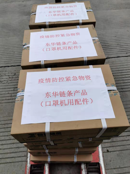 在當(dāng)前“新冠肺炎”防控依然嚴(yán)峻的形勢下,口罩是全國各地急需緊缺物資,而口罩機鏈條是口罩生產(chǎn)設(shè)備的必備零件。東華于2月10日開工,當(dāng)天深夜,國內(nèi)市場部接到兩個特殊訂單,一個是福建某客戶急需300條口罩機鏈條,希望盡快發(fā)貨;另一個是廣東某客戶需要1000條口罩機鏈條,要求2月20日前必須交貨。