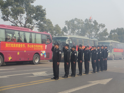 當(dāng)天是公司上班的最后一天,中午12點(diǎn)30分,在鞭炮齊鳴聲中,在保安們整齊劃一的敬禮中,在現(xiàn)場員工們的揮手中,9輛包車載著返鄉(xiāng)的員工們緩緩地離開了廠區(qū),駛向各自的家鄉(xiāng)。集團(tuán)副總經(jīng)理袁立華等一行領(lǐng)導(dǎo)也到現(xiàn)場歡送大家。
