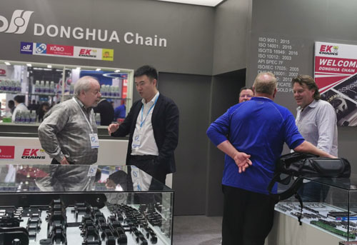 東華鏈條展出系列最新產(chǎn)品,隆重亮相展會(huì)。展廳占地100多平方米,位于傳動(dòng)件展廳顯著位置,設(shè)計(jì)美觀、大氣。今年重點(diǎn)展出了傳動(dòng)類(lèi)、輸送類(lèi)、農(nóng)機(jī)類(lèi)、高端裝備類(lèi)等最新鏈條產(chǎn)品。這些精良的產(chǎn)品代表了當(dāng)前公司高端的制造水平,吸引了無(wú)數(shù)國(guó)內(nèi)外新老客戶(hù)及參觀者的眼光。