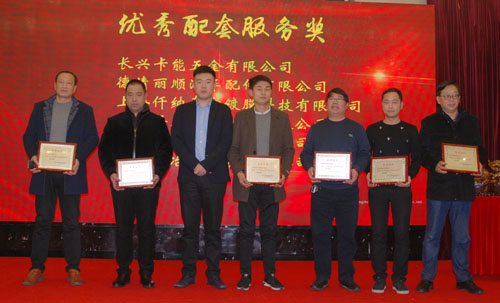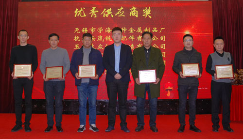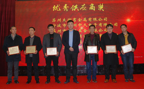 會上表彰了12家“優(yōu)秀供應商”和6家“優(yōu)秀配套服務獎”供應商。副董事長宣成向獲獎供應商代表頒獎并合影留念。