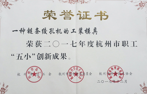 日前,在2018年開發(fā)區(qū)工會工作大會上,公司工會喜獲多項殊榮。東華鏈條集團工會榮獲2017年度余杭區(qū)職工“五小”競賽活動優(yōu)秀組織單位稱號;子公司自強鏈傳動公司工會榮獲“2017年度余杭區(qū)企業(yè)技能比武優(yōu)秀組織單位”稱號;公司“一種鏈條絞孔機的工裝模具”榮獲2017年度杭州市職工“五小”創(chuàng)新成果;公司“梯級鏈自動上油線改進”榮獲2017年度余杭區(qū)職工“五小”創(chuàng)新成果獎等。