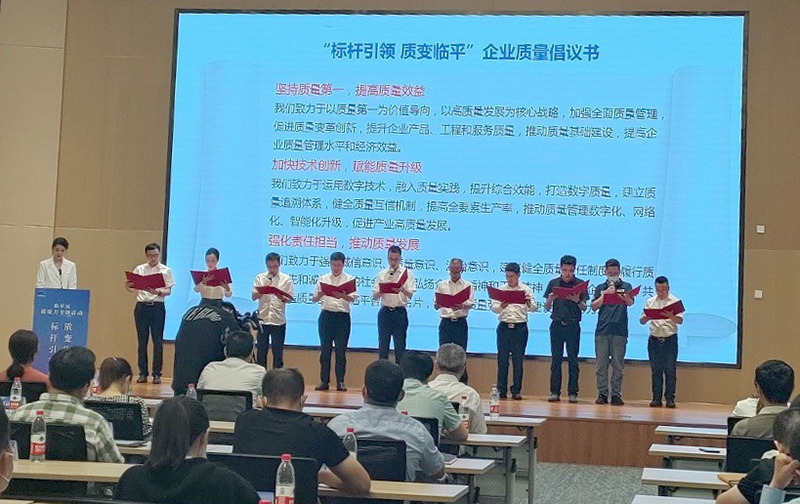 9月16日,臨平區(qū)質(zhì)量強區(qū)領(lǐng)導(dǎo)小組辦公室組織召開“標(biāo)桿引領(lǐng),質(zhì)變臨平”質(zhì)量月專題活動。東華作為區(qū)政府質(zhì)量獎企業(yè)應(yīng)邀參加“臨平質(zhì)量故事”分享,副總經(jīng)理廖杭州上臺宣讀了“標(biāo)桿引領(lǐng),質(zhì)量臨平”企業(yè)質(zhì)量倡議書。
