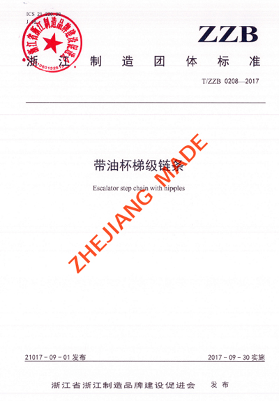 日前,浙江省浙江制造品牌建設促進會印發(fā)“浙促會標發(fā)[2017]43號”文件,批準發(fā)布由浙江藍箭萬幫標準技術有限公司牽頭組織制訂、杭州東華鏈條集團有限公司負責起草(主導制訂)的“浙江制造”團體標準T/ZZB 0208—2017《帶油杯梯級鏈條》。