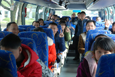 1月25日中午,公司南廠區(qū)大門外分外熱鬧,9部掛著祝福員工一路平安、新年快樂橫幅的大巴車一字排列,等待著送300余名員工回家過春節(jié),濃濃的節(jié)日氛圍掛在每個員工的臉上。